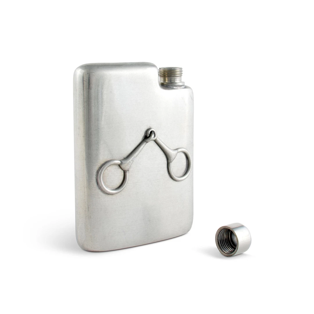 Long days on the trail are set right when you have a wee nip of your favorite drink in your pocket. Ride and drink in style with our O ring snaffle bit embellished, pewter hip flask. The smooth curved design is attractive and pocket-friendly, and the beauty of the pewter is evident at first glance. Perfect as a gift to your favorite equestrian, its excellent build quality and great design are deeply appreciated by the horsey set. Our quality flasks will last a lifetime and you may even pass one down to your kids.