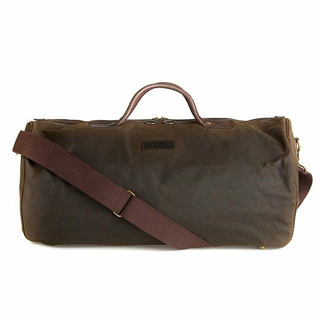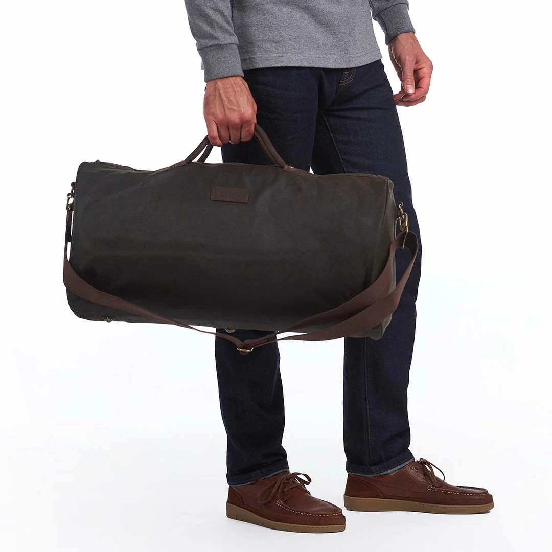 Spacious and versatile, the Wax Holdall is constructed in Barbour’s robust waxed cotton with stylish leather trims. The perfect size for overnight stays, this essential bag features two strong carry handles and a detachable webbing shoulder strap. Antique brass fittings and a cotton lining in Barbour’s Classic Tartan create a heritage look, and two zipped inner pockets safeguard valuables while on the move. Finished with an embossed Barbour badge to the outer.