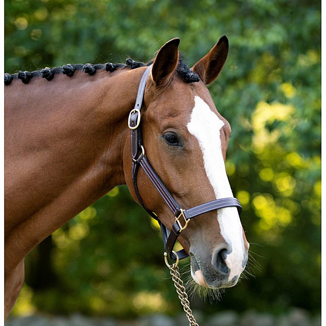 The Black Oak Pine is a brown unpadded halter with three rows of white stitching.
