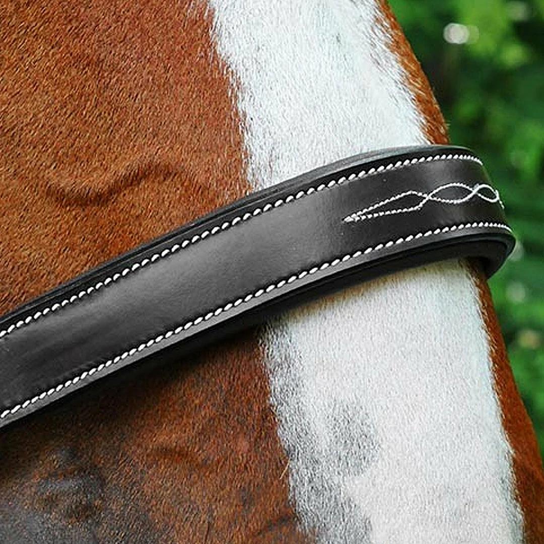 The Willow Halter is a Brown padded leather halter with fancy White stitching and brass fittings. This Halter is made with a top quality drum-dyed Shalimar leather.