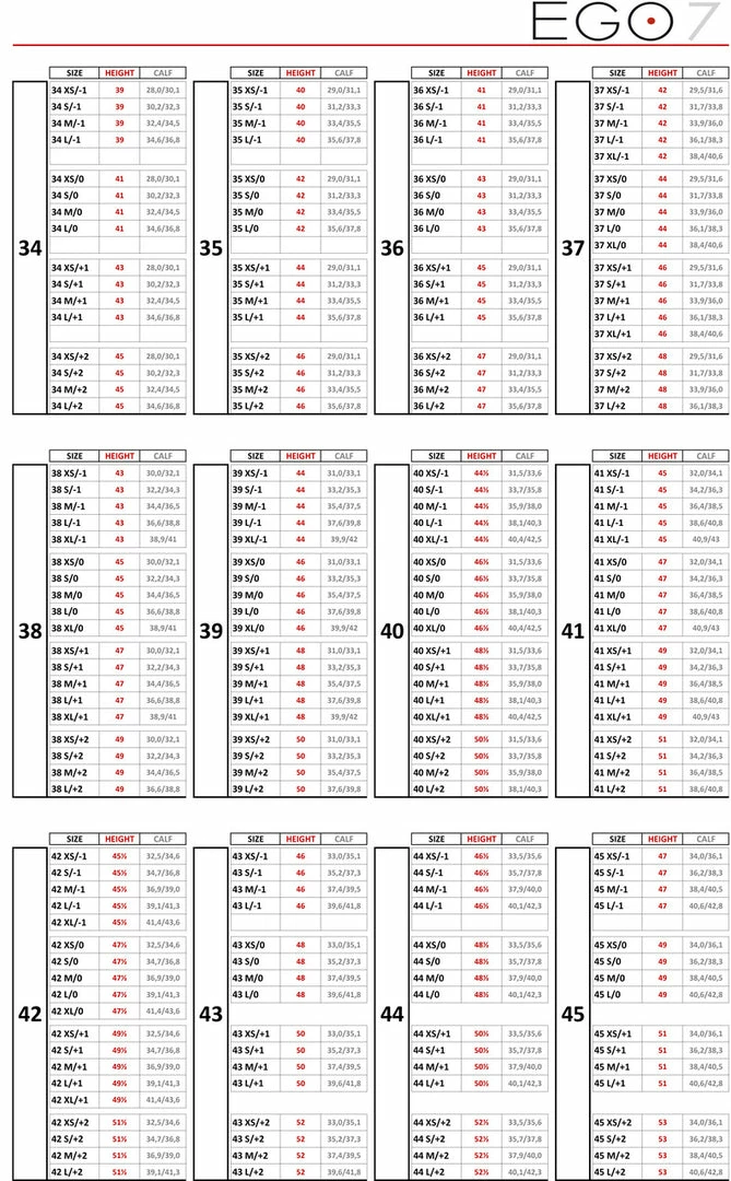 Need help determining your Ego 7 boot size? Check out our blog post with video instructionsย HERE.ย For the best measurements use a fabric measuring tape with centimeters. Still not sure? Give us a call at 864-457-3557 and we’ll walk you through it.