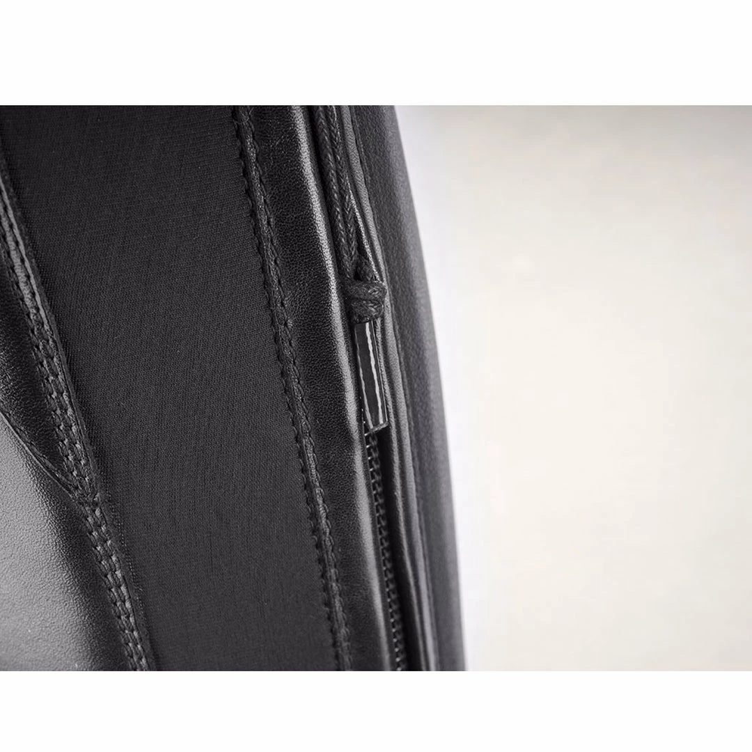 - Stretch leather panel provides a custom look and fit