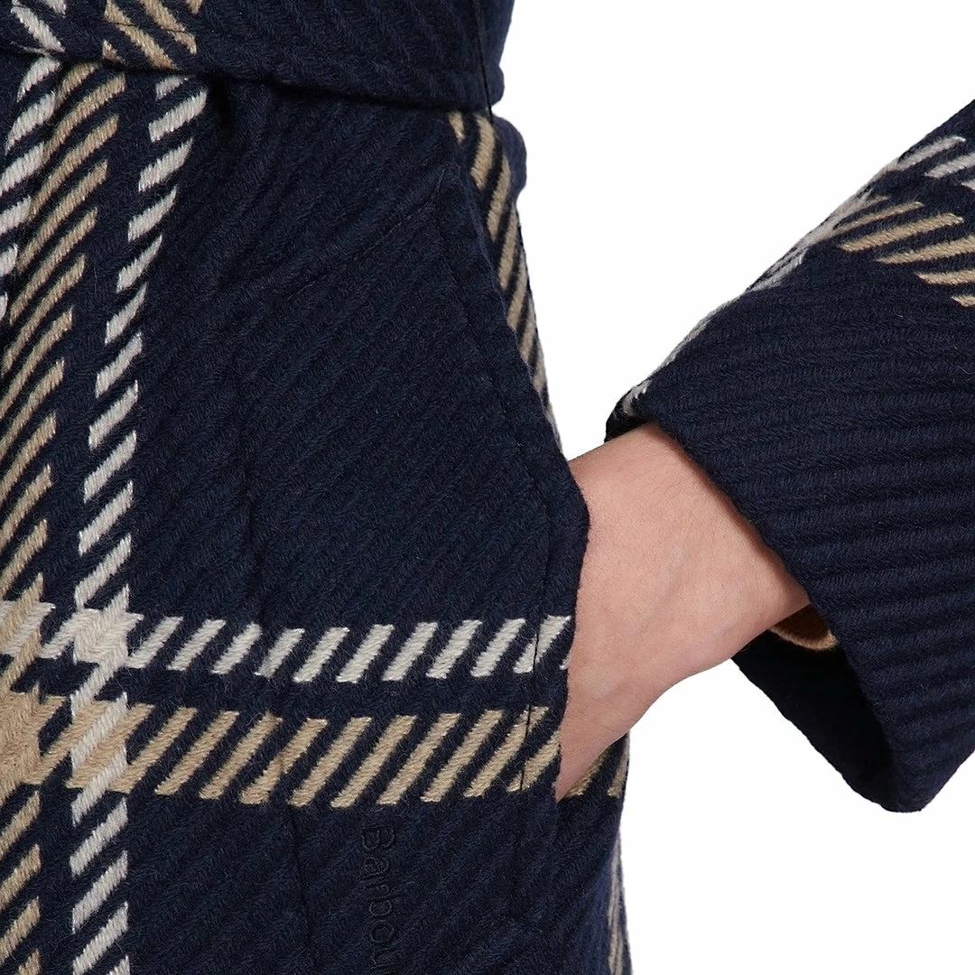 Featuring a belted wool wrap design, this coat features a hidden button fastening and showcases a large windowpane check. With a Barbour logo jacquard lining, the Barbour Killin tartan wool jacket features piping in the seams, the perfect smart casual outerwear.