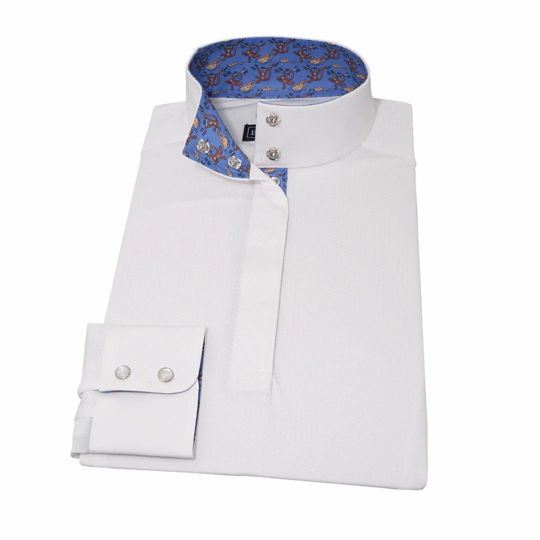We love this shirt because of the classic white styling, coupled with cute fashion graphics on the inner collar & sleeves.Β Β Show up, show out, & stand out at the show in thisΒ stylish shirt from Essex Classics.Β Β
