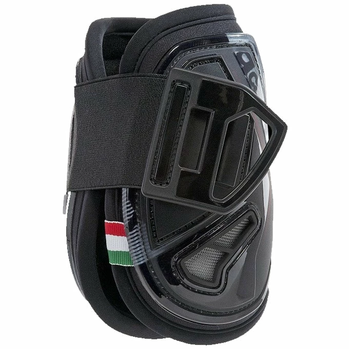 A new fastening solution, made with two durable and strong elasticated straps. Thanks to the special elastic rubber, these straps fit almost any size of cannon bone, making the boots suitable for a wide range of horses. At the same time, the material of the straps together with their integrated holes, were especially designed to avoid blood flow restrictions or pinching, thus providing maximum comfort to the horse.