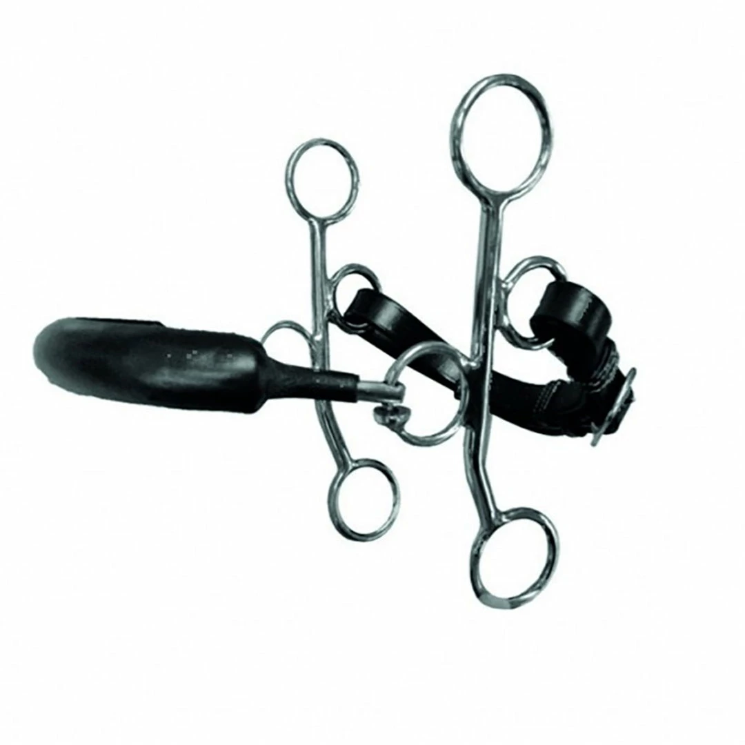 Hackamore with aย rubber coatedย noseband, stainless steel cheeks and leather curb chain. The Hackamore has a lever action on the bridge of the nose and the mandibles only. It will not have any action on the inside of the mouth. It it greatย for horses that don’t tolerateย bit contact in their mouth, for those that fight the rider’s hand or for those that can’t be ridden with a mouthpiece.