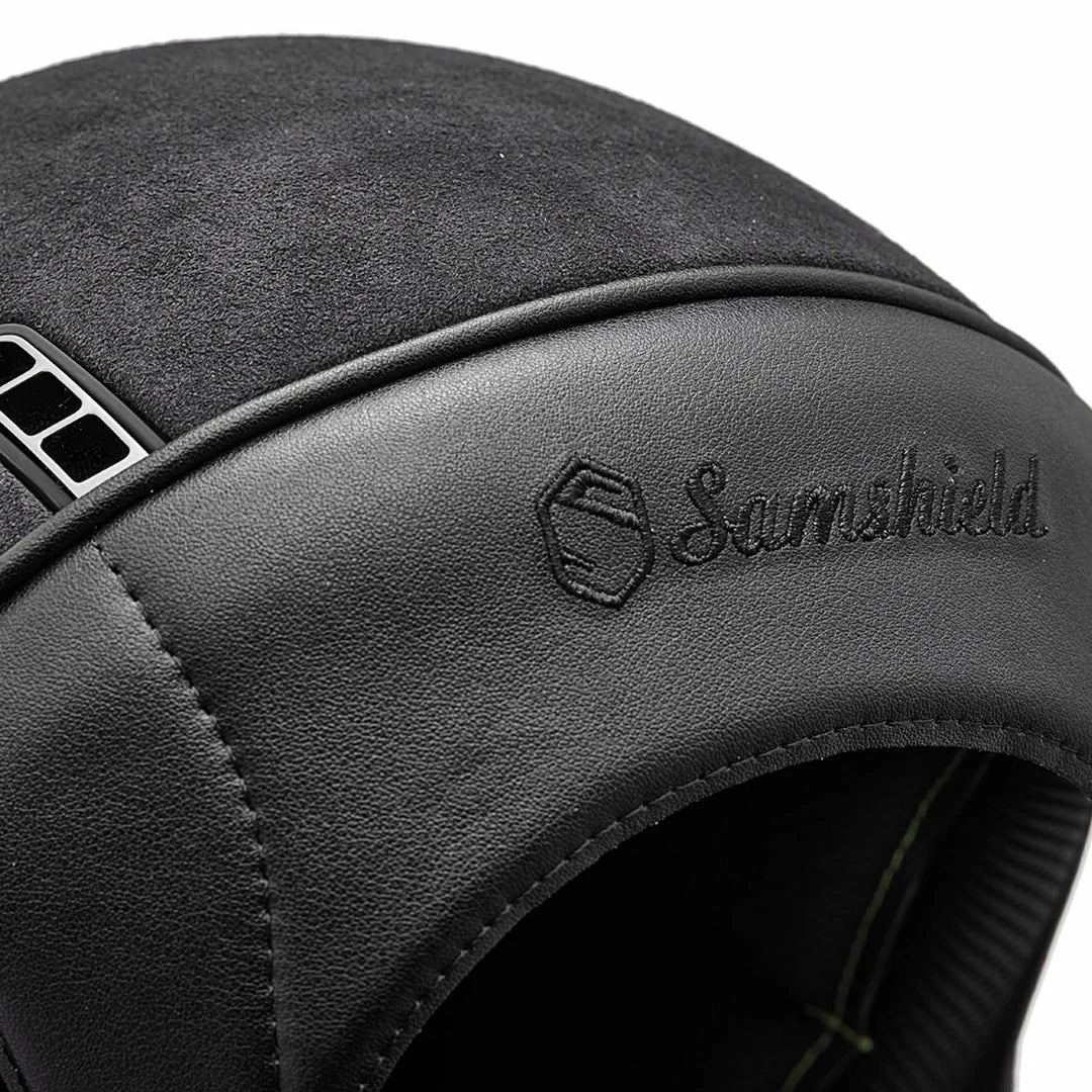 The Samshield Miss Shield Premium Alcantara Top Helmet offers a matching alcantara top material with a stylish frontal band above the visor. The extended visor is now longer and wider to help with protection from the sun. This new helmet combines the comfort, style and safety that all Samshield helmets offer into one beautiful equestrian riding helmet. This modern helmet has a streamlined look and a beautiful Alcantara top. The fabric will not fade in the sun and is water resistant.