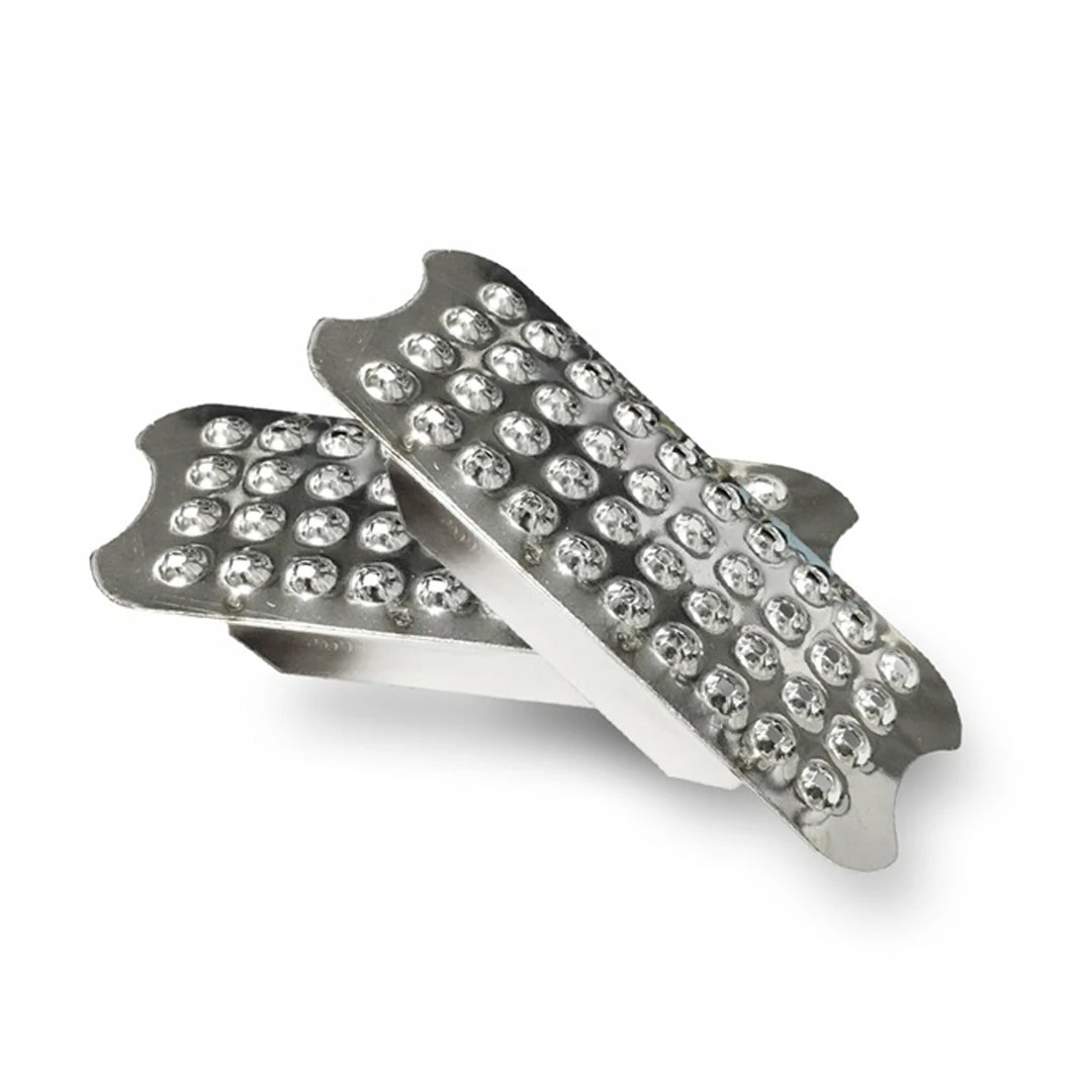 We love these stirrup tread inserts because they are made of durable stainless steel and have a grated surface.ย