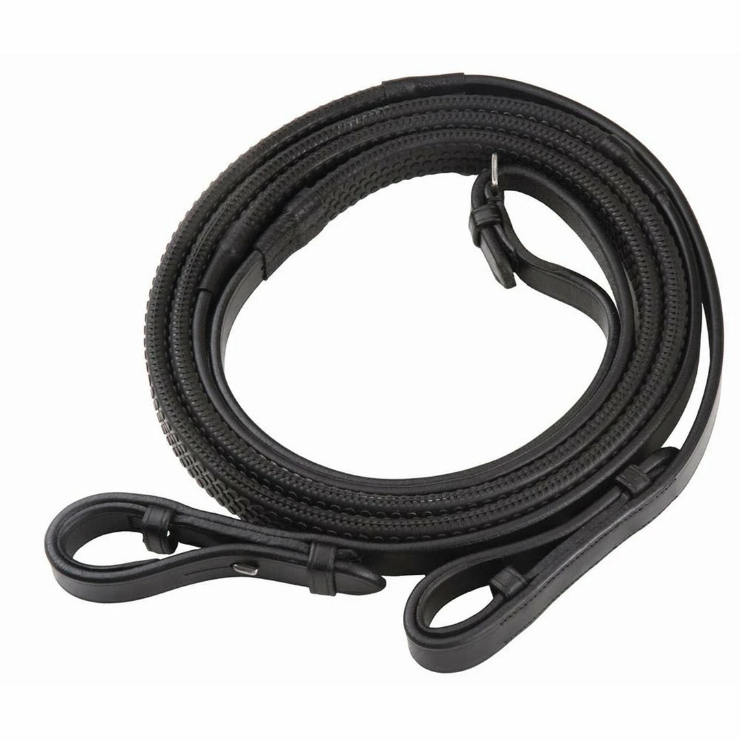 These durable Rubber Reins will assure a confident grip on the reins for an improved connection with your horse. Our Henri de Rivel Advantage Rubber Reins are perfect for schooling and available in several color options to match the rest of your HDR tack! These rubber reins have a textured feel and extra grip while allowing for elasticity compared to traditional leather reins.