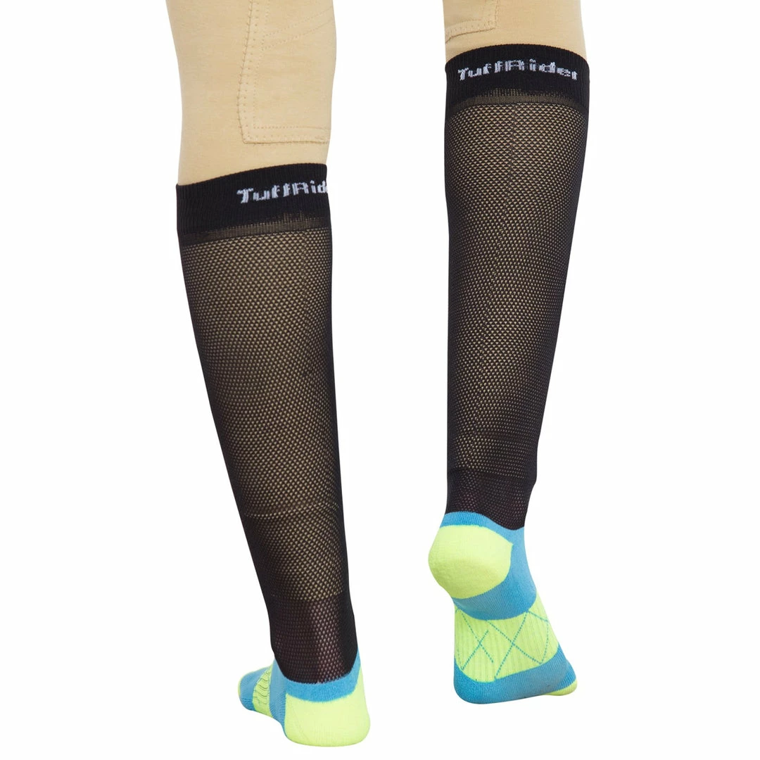The new TuffRider EquiCool Ventilated Riding Socks are designed for the technical demand of riding footwear. A nylon mesh leg allows maximum ventilation, compression and ease of entry into riding boots. The bamboo/cotton foot has a terry sole for comfort and a ribbed structure for arch support. The natural properties of bamboo make them anti-microbial and quick drying.