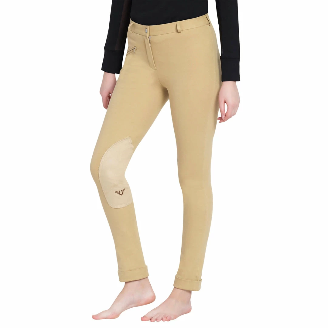 We love these TuffRider Ladies Cotton Jodhpurs for the traditional styling, coupled with the UltraGripp Knee Patches for increased security where you need it most. These jods have a modified rise, & sit just below the waist for extra comfort. this design also includes a slash zip pocket,