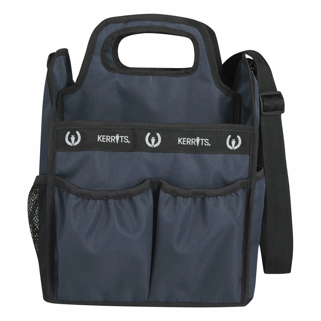 Organization is a snap with this barn caddy thanks to multiple interior and exterior quick-access pockets, strategically split to securely hold essential items in place. Dual carry handles and a shoulder strap make it easy to travel from the tack room, to the trailer, to the side of the ring; and a durable mesh bottom allows dust and debris to fall through. Water-resistant nylon is easy to clean and holds up to the rigors of barn life.