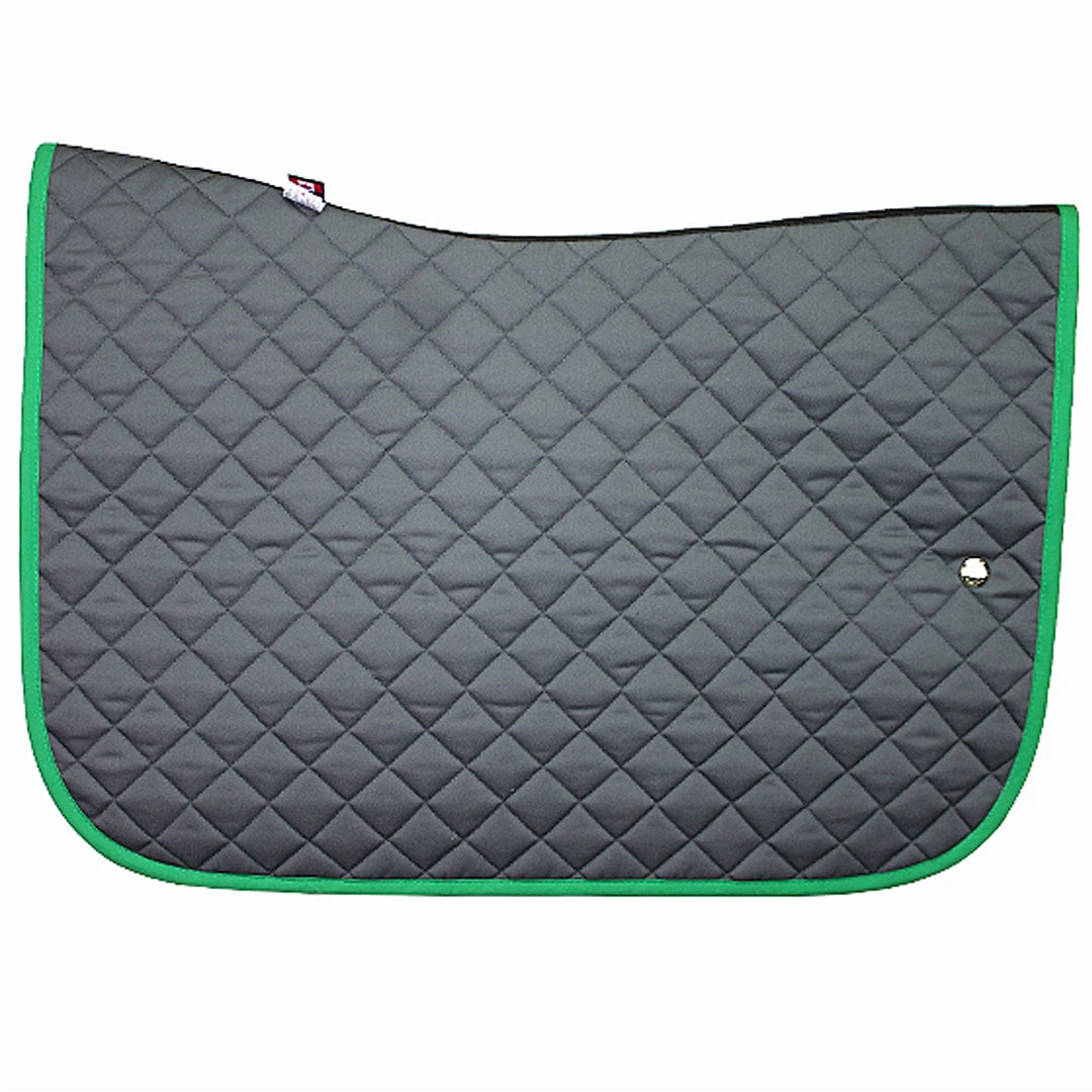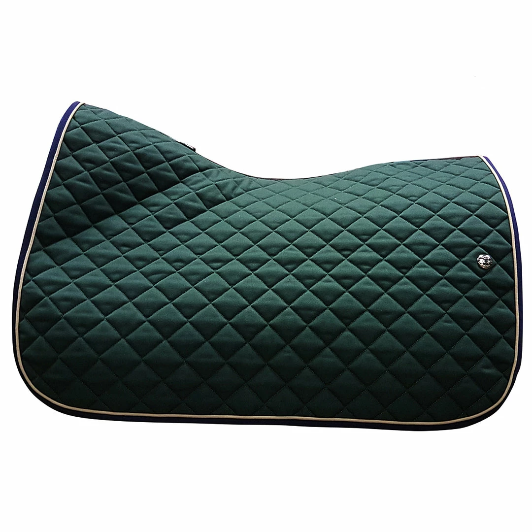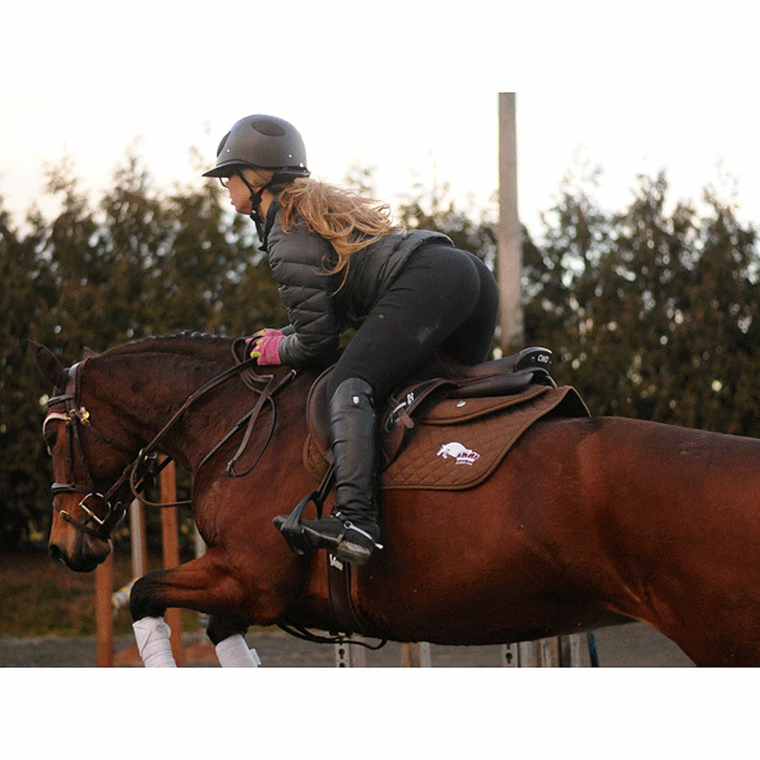Top-notch Ogilvy design: ergonomic, with a unique V-top shape, it reduces friction at the withers and on the back and sets the pad firmly at the base of the withers. Made of resistant poly cotton twill, protected with stain resistance on the outside, and our special quick-dry anti-bacterial/anti-fungal brushed poly on the inside. No foam in the inner section: it has been replaced by high-performance hollow-core fiber to wick moisture away from your horse and dry quickly after use.