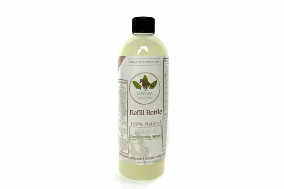 Simply pour the concentrate into your Purvida Healthy Horse Spray Bottle to the “Fill Line” line marked approx. 1/4 of the way up the bottle, fill the rest of the bottle with water, and enjoy! Use daily to prevent shoulder rubs, protect against various skin conditions, and have the best smelling horse at the barn!