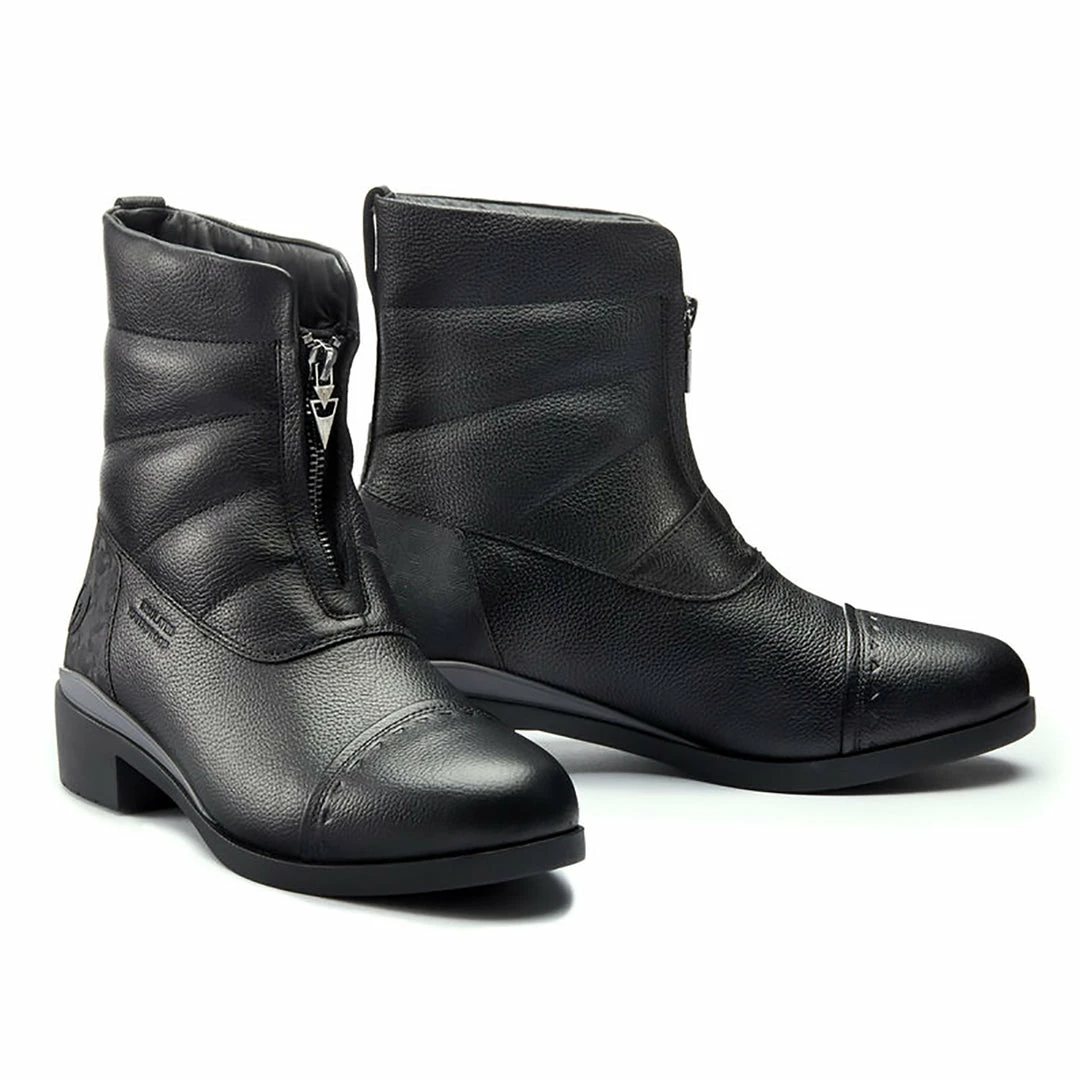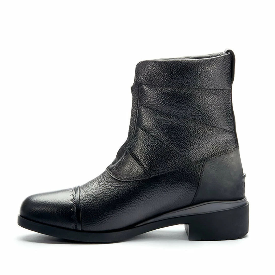 Snow? Ice?ย Mare that insists on a tromp through both to catch her? No problem. These boots keep feet warm, dry, and happy in the stirrups and on winter rounds all day long. RideWarm&Dryโข technology encapsulates feet for winter performance without the bulk. Seam-sealed waterproof leather uppers and internal waterproof membranes keep moisture out while an insulated lining keeps warmth in. A neoprene tongue backs the front zipper for additional water resistance. Abrasion-resistant, textured full-grain leather adds durability and style. OrangeZoneโข outsole gives riders full-traction confidence in the irons and on icy ground.