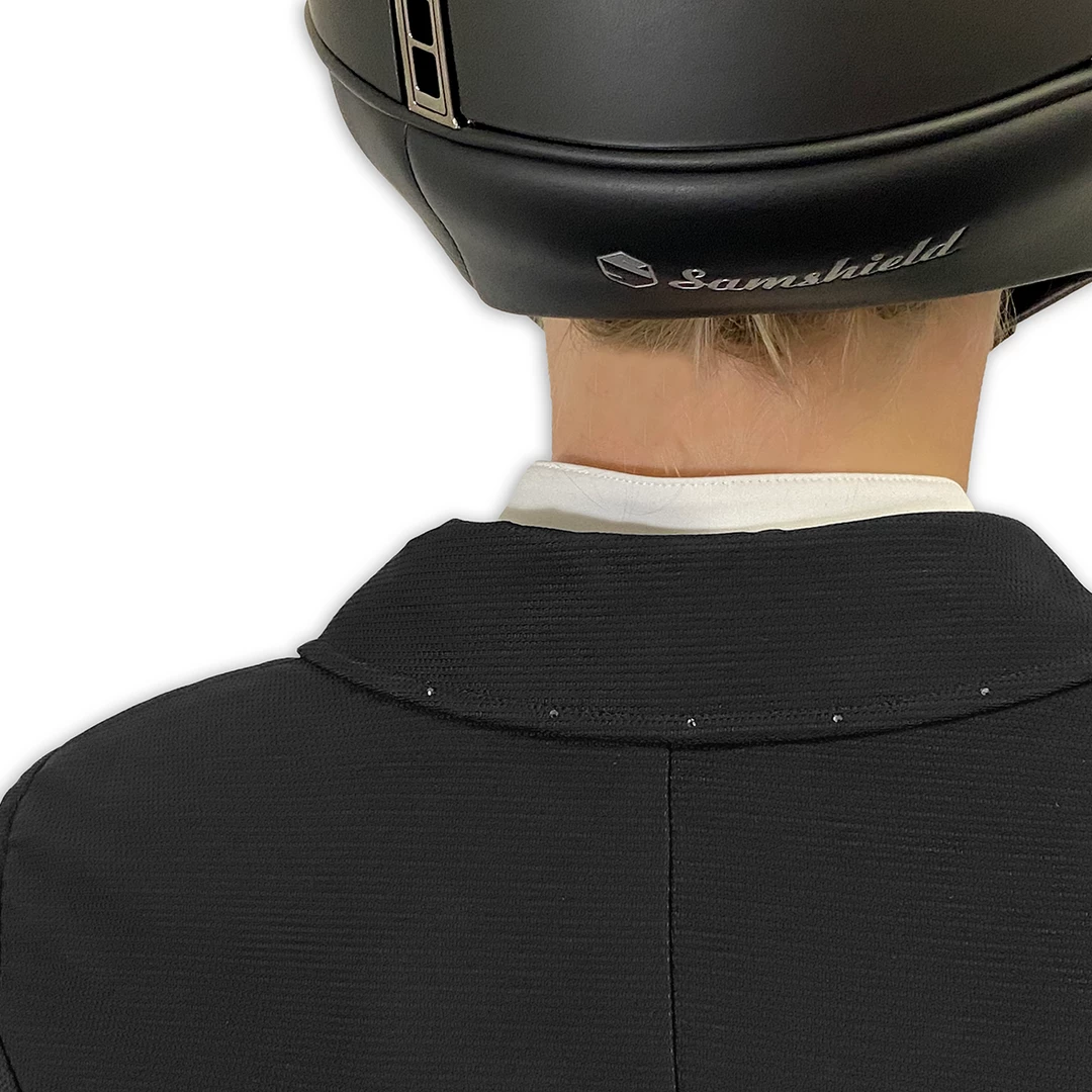 We love this show coat because of the subtle yet gorgeous crystals along the collar. They give just the right amount of sparkle to help you outshine your competitors. Soon to be your new favorite “mesh” show coat.