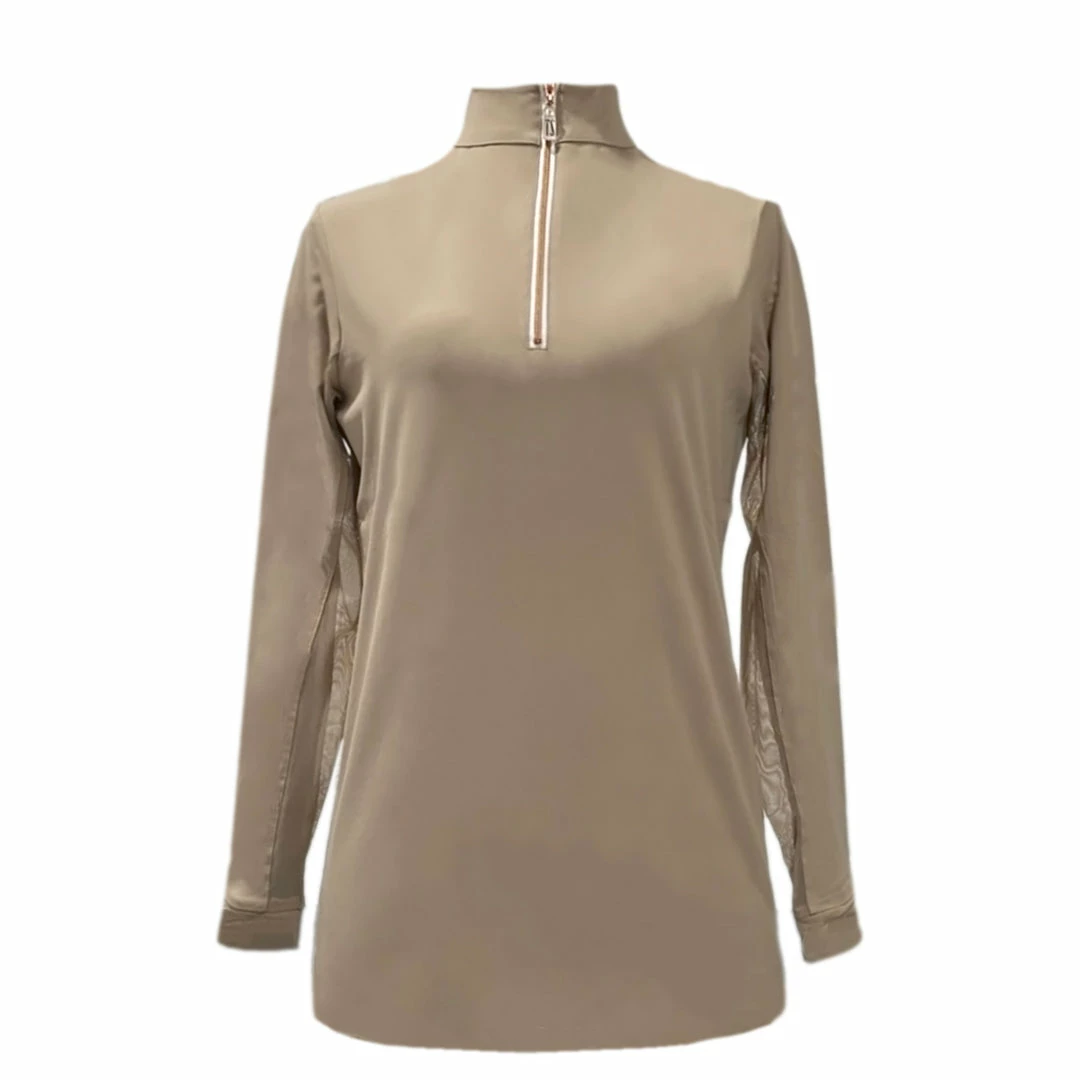 Long sleeves and a high neck keep your skin protected from the sun’s harmful rays, while mesh panels under your arms help keep you cool.