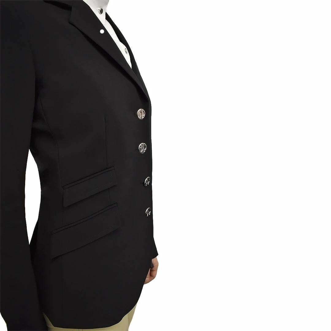 Women’s show coat made with X-COOL fabric. This sleek design coat with four buttons offers a tailored construction fit.