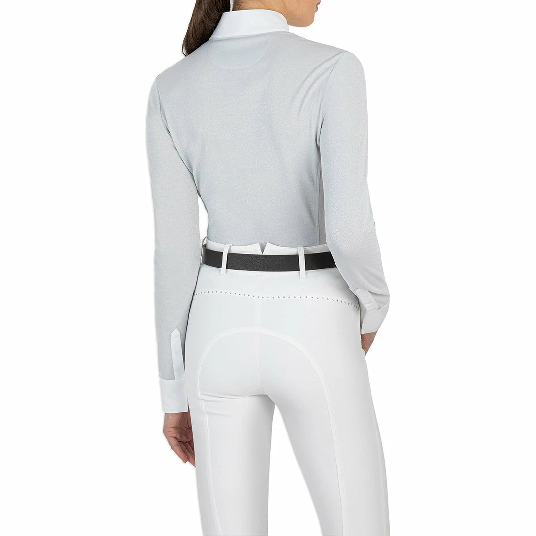 We love this show shirt because of the epic level of glitter that is fun for schooling, but under a show coat is appropriate for all rings.