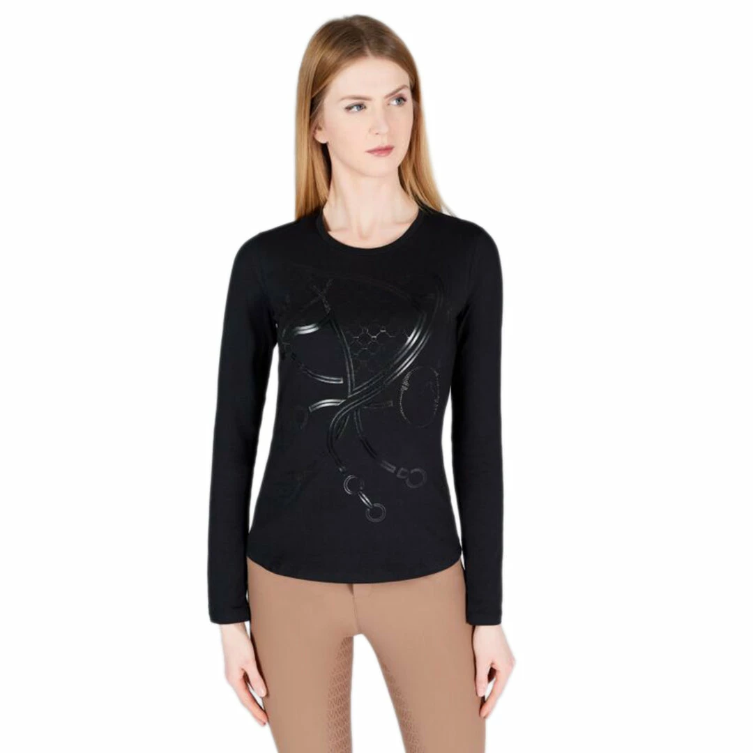 Vestrum Womenโs Taormina T-Shirt is made in high-quality elastic cotton, breathable, and comfortable for everyday training. Big horse head design that covers the front part of the t-shirt with a special elegant tone – sur tone effect with micro studs that enhance the design.